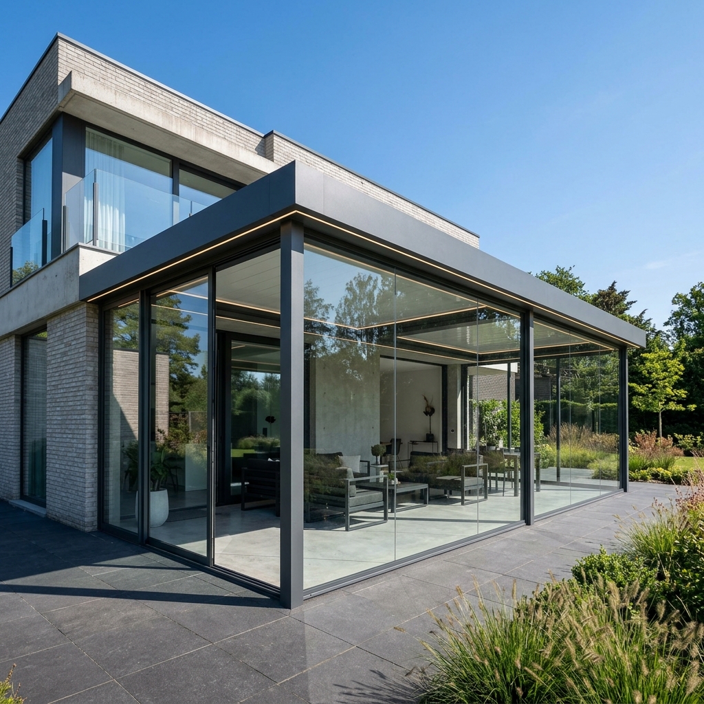 L'aluminium thermolaquĂ© s'est imposĂ© comme le matĂ©riau de rĂ©fĂ©rence pour les vĂ©randas en Belgique grĂące Ă une combinaison unique d'avantages : des profilĂ©s extrĂȘmement fins (50-65 mm) qui maximisent la surface vitrĂ©e, une absence totale d'entretien et une durabilitĂ© exceptionnelle de plus de 30 ans. Dans le climat belge â pluie frĂ©quente, gel hivernal, humiditĂ© constante â l'aluminium est le seul matĂ©riau qui ne craint ni la corrosion ni le vieillissement UV.
